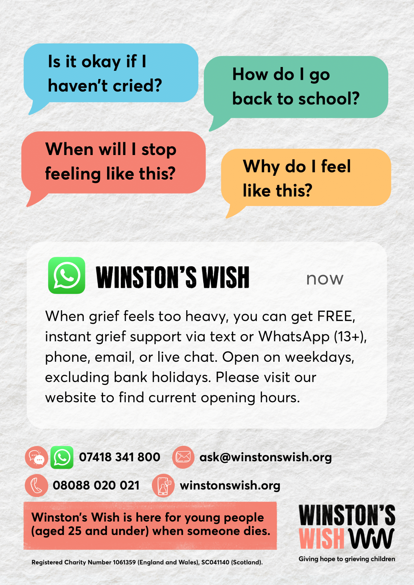 We understand how important it is to support our young people who are facing bereavement. That is why we are highlighting the incredible work of Winston’s Wish.