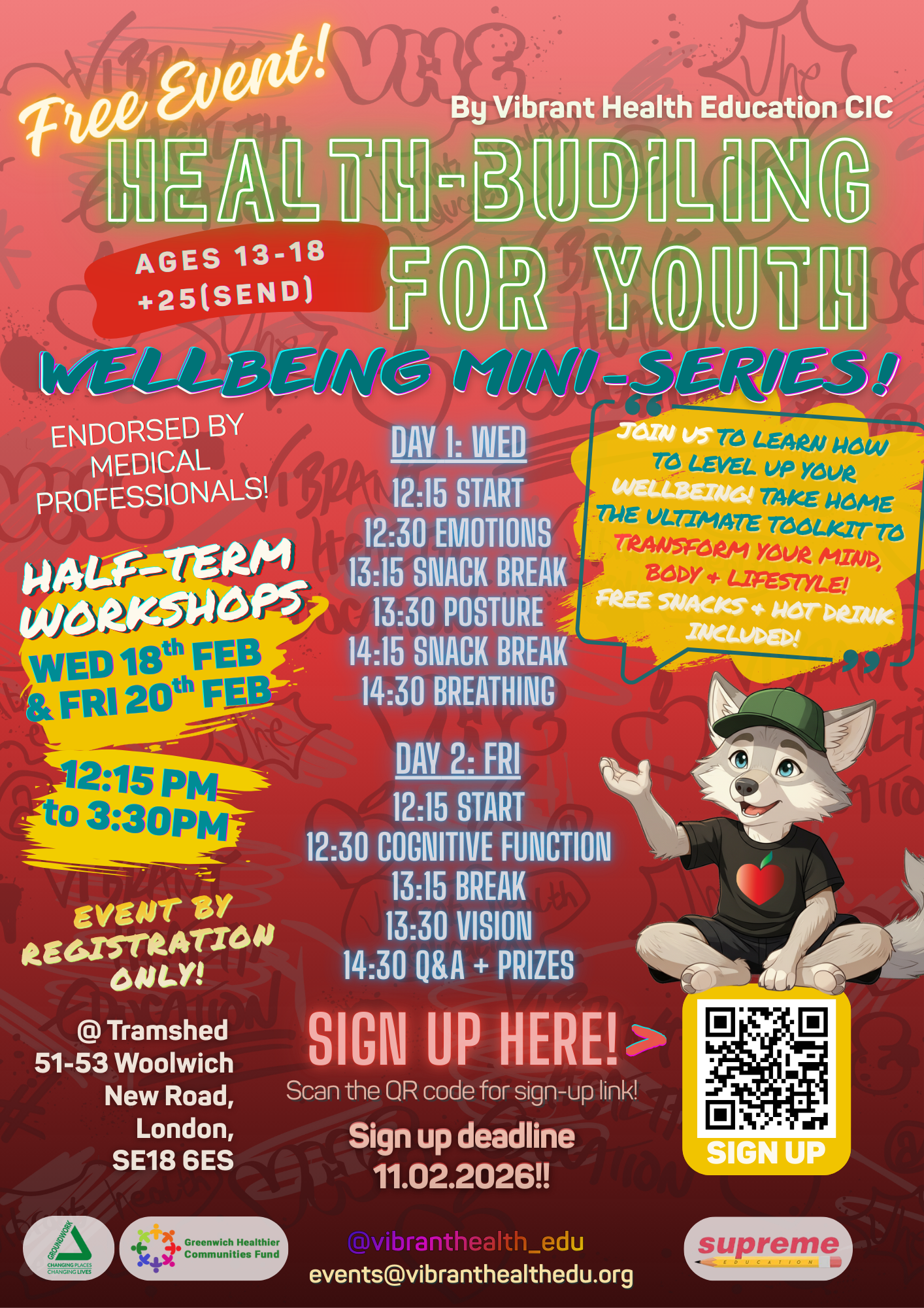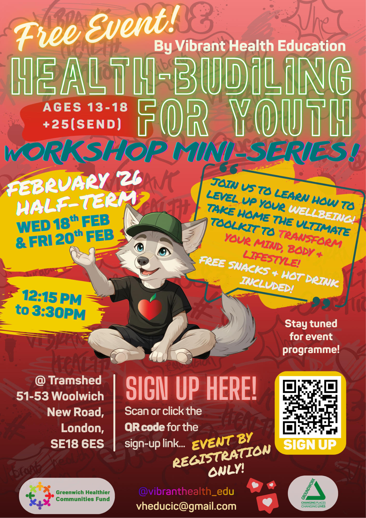 This February half-term, Vibrant Health Education CIC - a not-for-profit initiative funded through the Greenwich Healthier Communities Fund, with support from Young Greenwich and Charlton Athletic Community Trust (CACT) - will be delivering a free Health-Building Workshop Series for young people aged 13–19 at The Tramshed, Woolwich.